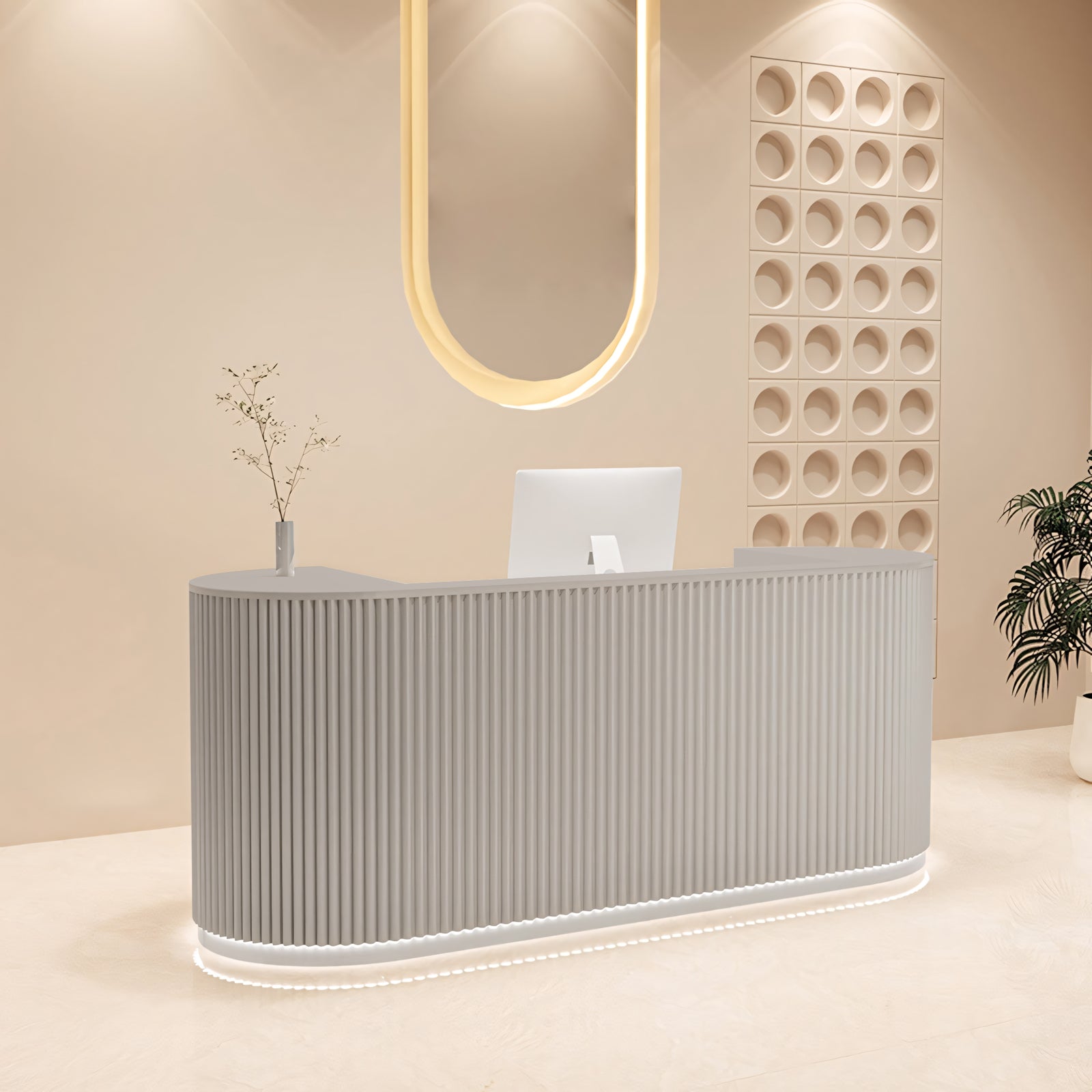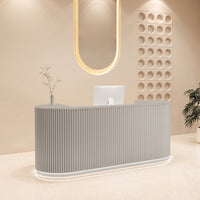 | This reception desk is a fashion-forward choice for modern offices and hotel lobbies. With its unique design showcasing contemporary style, the creamy tones add a touch of luxury to the overall ambiance. Beyond its appeal in office settings, this desk is also perfect for beauty and hair salons, bringing a subtle and elegant creamy touch to your establishment. Elevate the professional image of your business by choosing this stunning reception desk, adding a touch of sophistication to your space. |