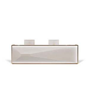 | This reception desk combines modern minimalist design with high-quality stainless steel, bringing a unique touch of luxury to your beauty salon, clothing store, and medical aesthetics institution. Its exquisite appearance and sturdy structure make it an ideal choice for the company's front desk, adding a fashionable atmosphere to your business space. Designed with practicality in mind, the compact bar table facilitates storage, providing an ideal working reception environment. |