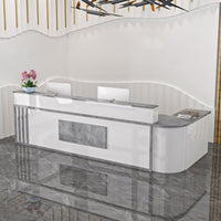 (In Stock) Marble-Effect Lacquered Corner Checkout Reception Desk JDT-1069