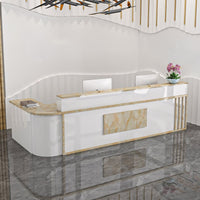 | Step into professionalism with our luxurious reception desk, meticulously crafted to redefine the ambiance of any workspace. Elevate the essence of your reception area with this captivating design, exuding elegance and sophistication. Its seamless blend of form and functionality creates an inviting atmosphere while making a striking first impression. Crafted with meticulous attention to detail, this desk radiates professionalism, offering a perfect balance of style and practicality. Transform your reception area into a symbol of refined taste and professionalism, setting the tone for exceptional client experiences. |