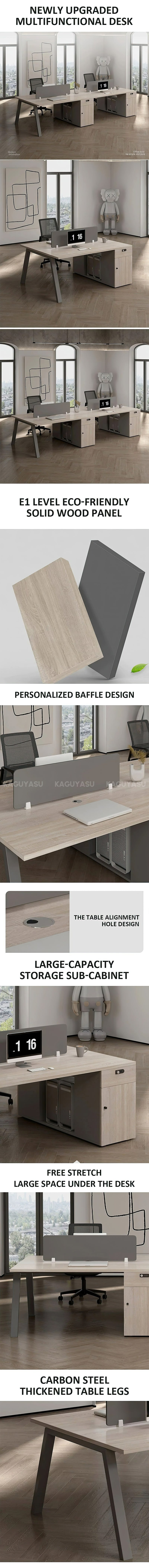 Description:Experience sophistication and functionality with our exquisite office desk and chair set tailored for dedicated 6-person workstations. This ensemble embodies simple modernity with an exquisite touch, perfect for collaborative work settings. Crafted with meticulous attention to detail, each workstation offers ample space for tasks, paired with ergonomic chairs ensuring comfort during extended work hours. The sleek design exudes elegance, enhancing the office aesthetics while optimizing functionality. Elevate your team's productivity with this exquisite desk and chair set, where style meets efficiency, fostering a collaborative and refined workspace. |