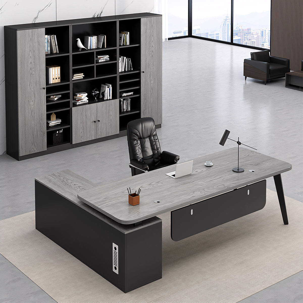 | This modern minimalist executive desk, crafted from premium materials, features an L - shaped design for efficient workspace. With sleek lines and a subdued palette, it suits high - end offices, streamlining workflow and elevating executive spaces. | |