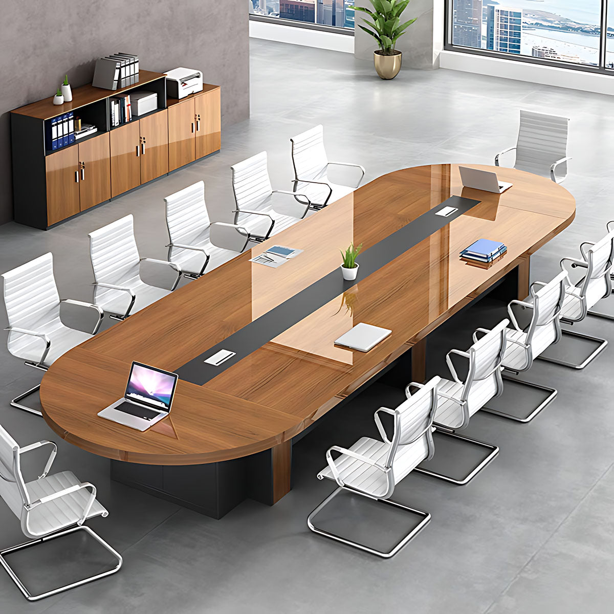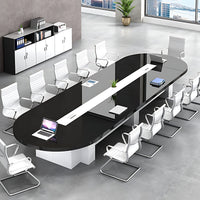 | This conference table features a grand and minimalist appearance. The oval - shaped design adds a touch of dynamic beauty. The tabletop is made of high - quality materials, with a smooth touch, excellent wear - resistance, and durability, easily handling daily conference use. It can also be used for cable management and other purposes to keep the tabletop clean and organized. | |
