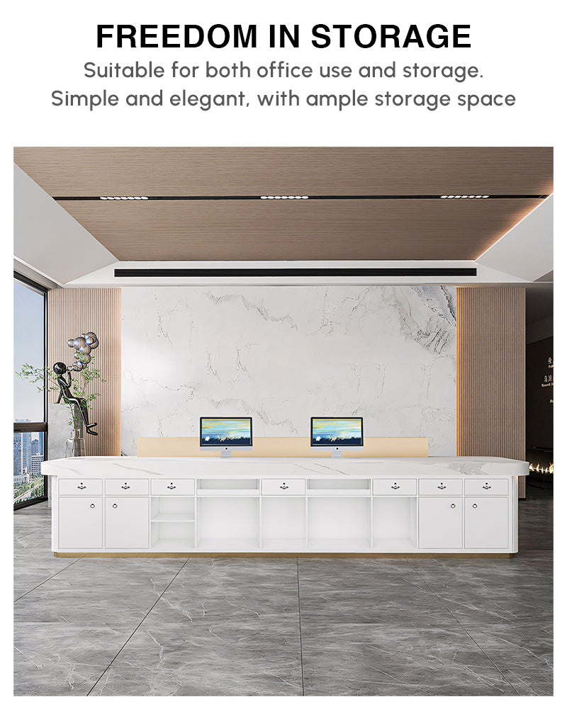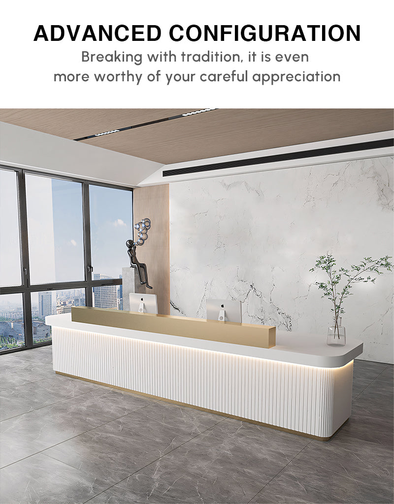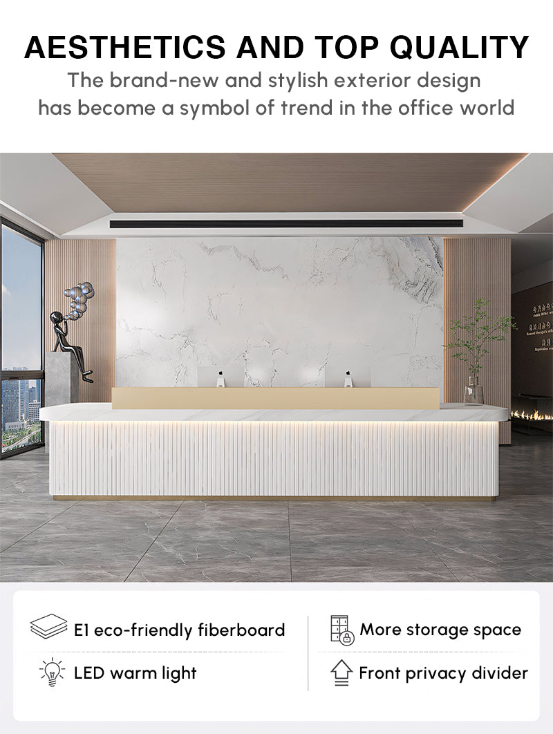 | Our reception desk, arriving fully - assembled, is a blend of modern design and practicality. The built - in LED lights give it a contemporary look, making it suitable for various professional settings like corporate offices or hotels. Its stainless - steel countertop is both durable, able to endure daily wear, and stylish, adding elegance. With storage compartments, it ensures a clutter - free workspace, offering the best of both worlds in terms of functionality and aesthetics for any professional space. | |