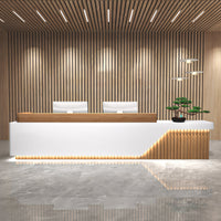 | Revitalize your reception area! This minimalist, modern reception desk features LED lighting and stylish metal edging, making it perfect for beauty salons, spas, and wellness centers. It offers ample storage space while enhancing overall aesthetics and appeal. | |
