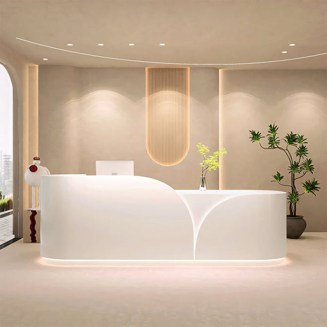The arc L-shaped reception desk is a perfect combination of aesthetics and practicality for beauty salons, companies, clothing stores, and boutiques. The unique design is stylish and fits various spaces,...