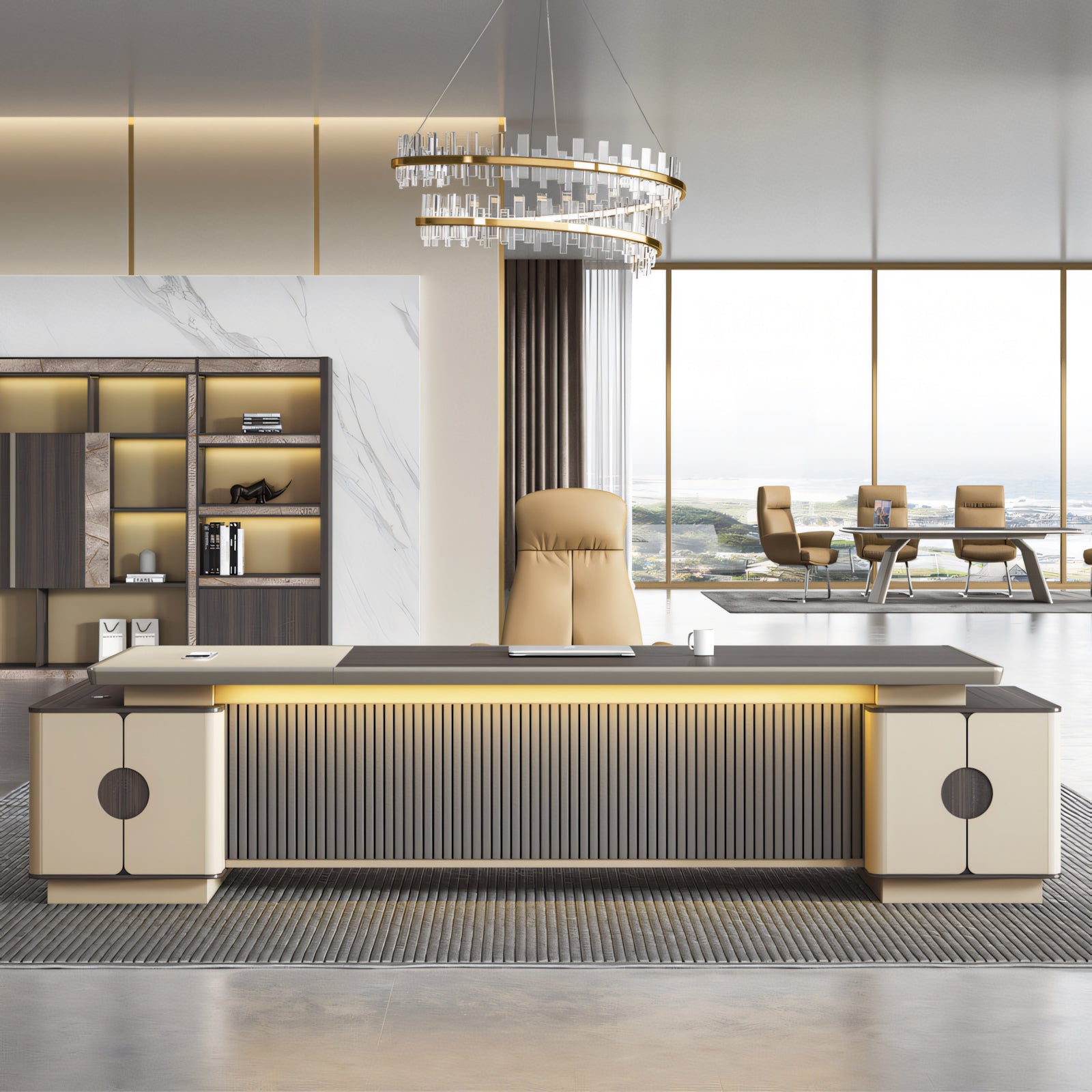 Description:Introducing our high-end executive office desk, a stylish wooden multifunctional masterpiece. Crafted for the discerning professional, this desk combines elegance and versatility effortlessly. Elevate your workspace with the epitome of high-end executive furniture, where style meets multifunctional design seamlessly. |