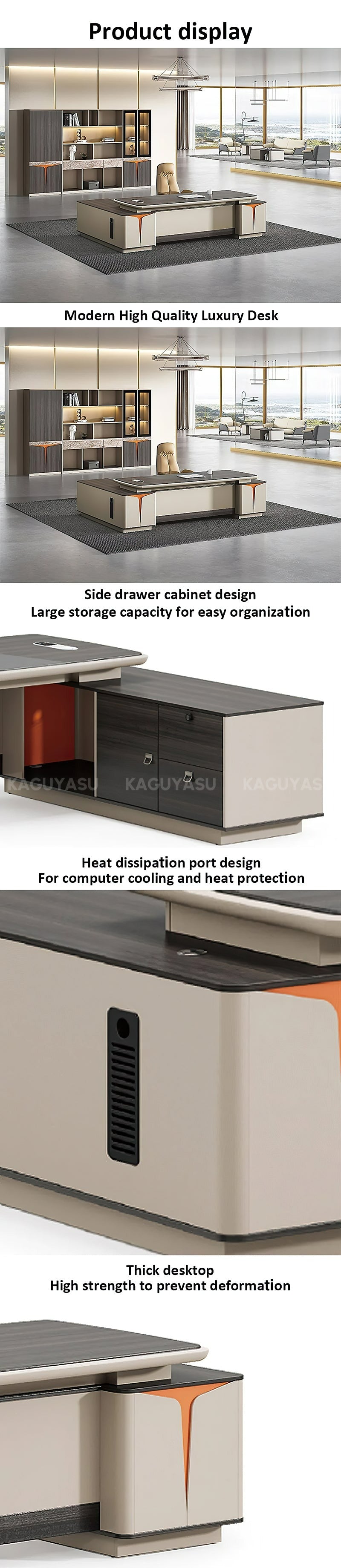 Description:Introducing our classic rectangular executive office desk with an integrated drawer cabinet. Crafted with timeless elegance, this desk offers a spacious workspace and convenient storage solutions. Elevate your office with the perfect blend of classic aesthetics and practicality, where style meets functionality seamlessly. |