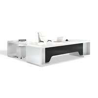 This minimalist luxury white L-shaped executive desk is designed for the modern professional, combining elegance with functionality. Crafted from E1 grade eco-friendly board, it ensures exceptional stability and durability, making it a reliable choice for any workspace. The smooth surface not only enhances its aesthetic appeal but also provides a comfortable workspace for daily tasks. This eco-friendly piano paint finish elevates the desk's overall look, providing a glossy, sophisticated surface that is both wear-resistant and waterproof. This durable finish ensures lasting quality, making it suitable for high-traffic office environments. This design includes a graceful curved shape that minimizes sharp corners, enhancing safety while contributing to a soft visual appeal. The thick desktop offers increased load-bearing capacity, ensuring stability and reliability for everyday use, while the practical black privacy panel design effectively enhances focus by preventing visibility from outside. Pair this desk with an ergonomic high-back executive chair and a sleek white high-gloss file cabinet for a cohesive, modern office furniture setup. |