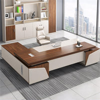 Description:This stylish executive desk and chair set redefine sophistication in the office space. Crafted for executives seeking both style and functionality, the set boasts a thickened computer office desk designed for enduring comfort and productivity. The desk's robust construction ensures stability and ample space for computer setups and work essentials, while the accompanying chair offers ergonomic support for long hours of focused work. Elevate your workspace with this set, marrying contemporary design with practicality, ideal for executives aiming for an environment that exudes professionalism and comfort simultaneously. |