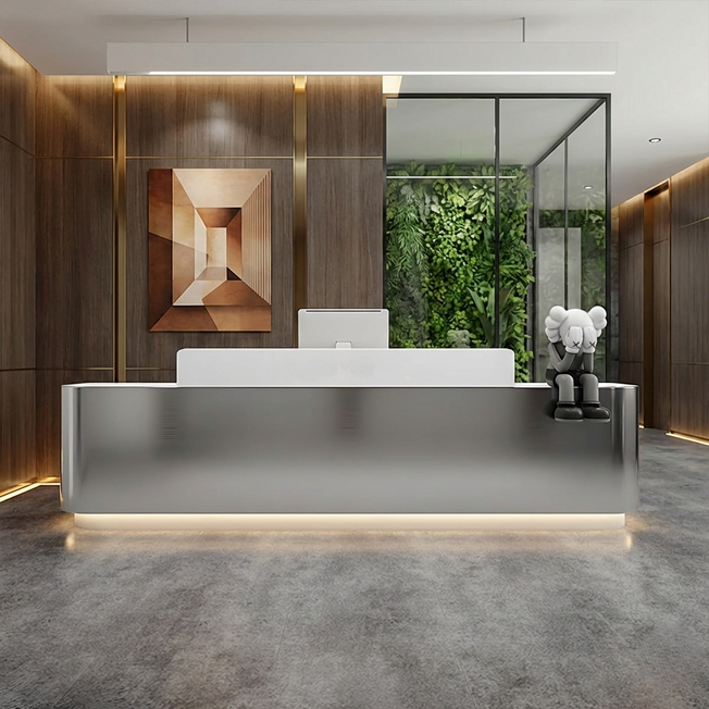 Customized Elegance Leading the Way Stainless Steel Reception Desk JDT-7286 Tailored to meet your unique needs, it stands as a statement piece in any setting, be it a contemporary office or a luxury commercial environment. This stainless - steel reception...