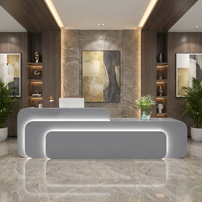 Simple Modern Company High-end Front Desk Reception Desk JDT-7187 This high-end front desk is a modern marvel, blending simplicity with charm. Its minimalist design adds class to any corporate space. Made from premium materials, it's durable and luxurious. The...