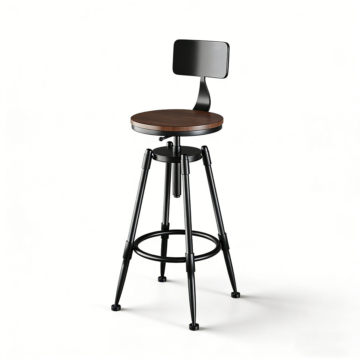 The bar stools come with adjustable height and built-in footrests, ideal for users of different heights and various scenarios. Sturdy frame, sleek and practical.