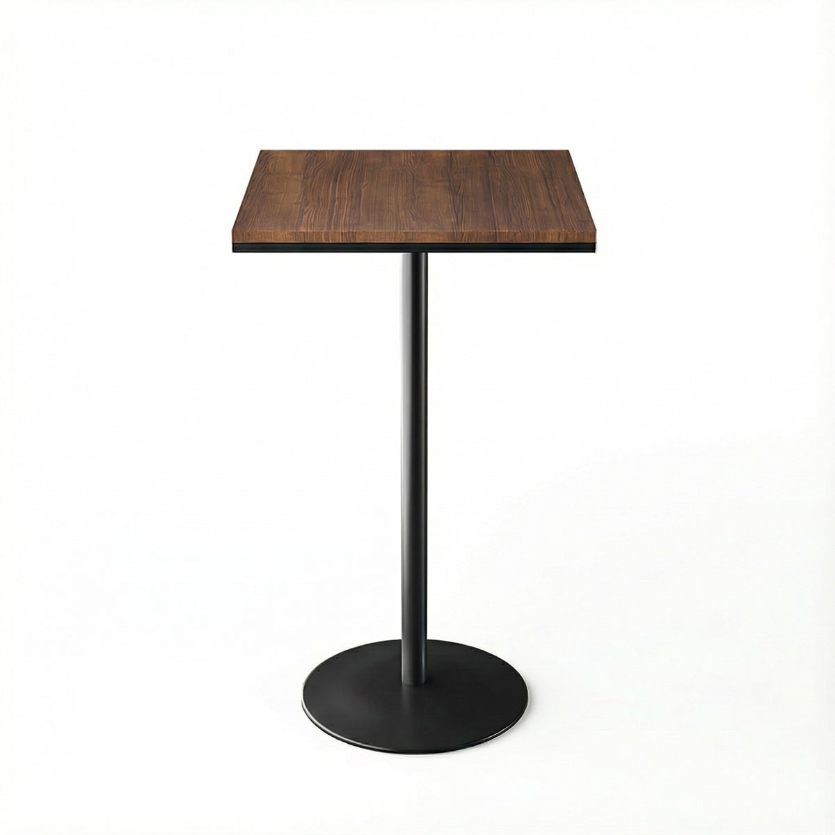 This bar table and stool set features clean, uncluttered lines with no excessive decor. It pairs a black metal frame with wood-like tabletops and stool seats, making it perfect for frequent daily use.
