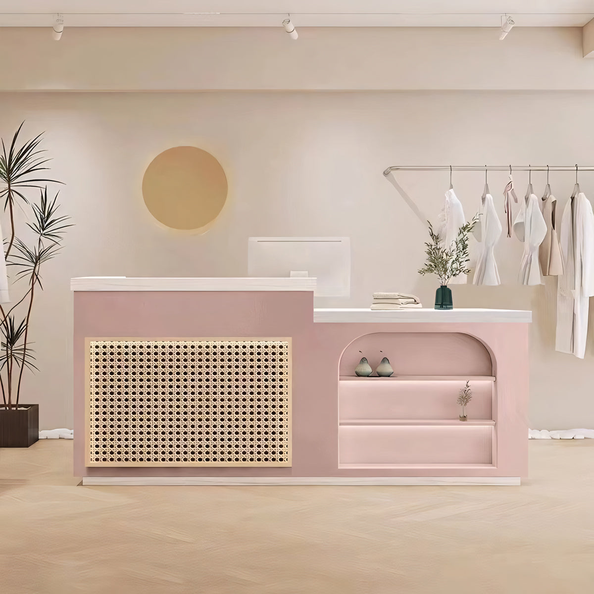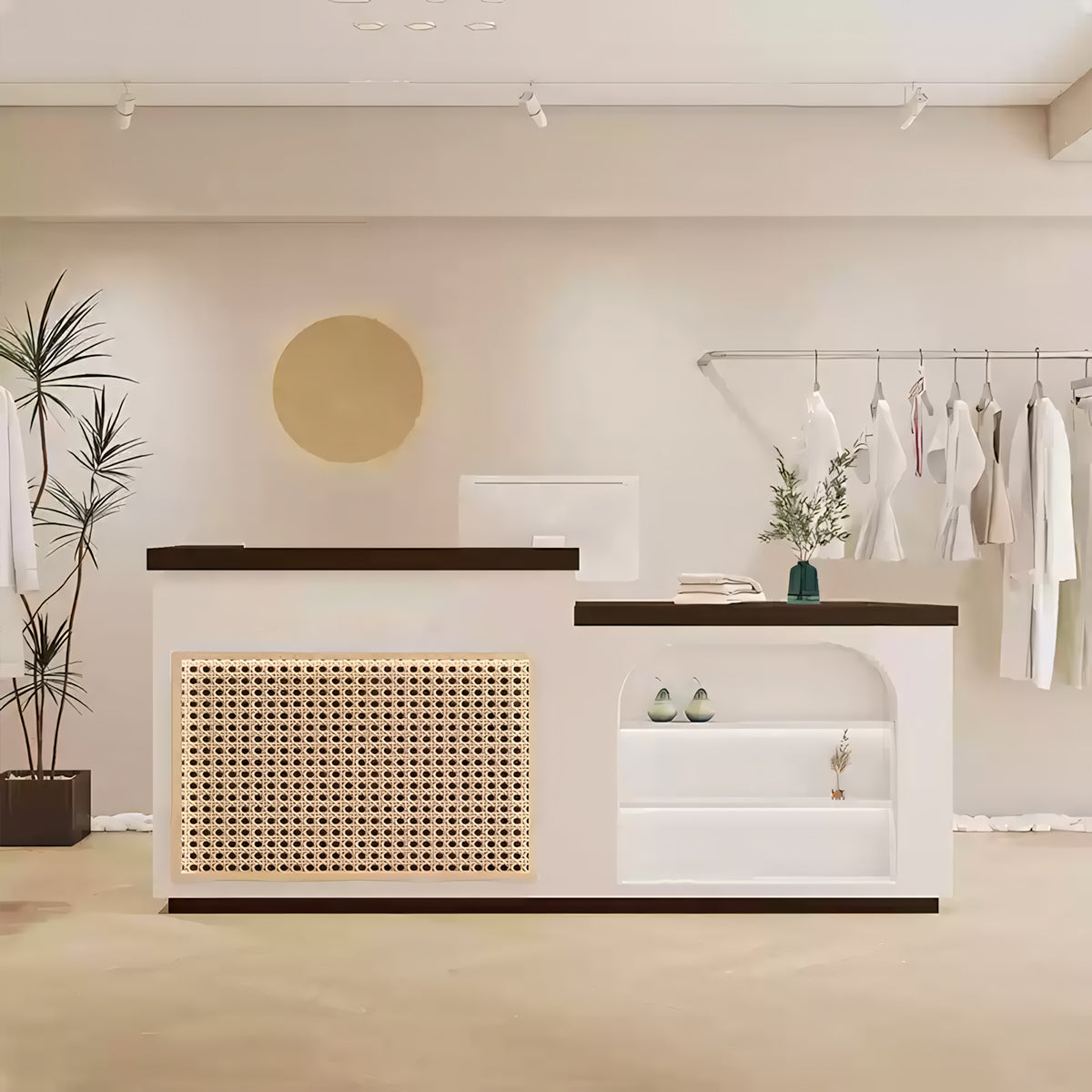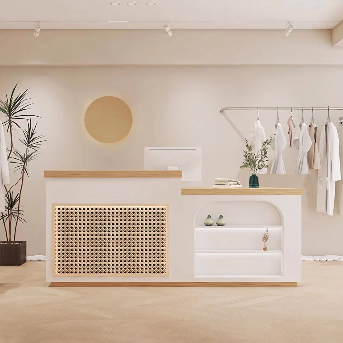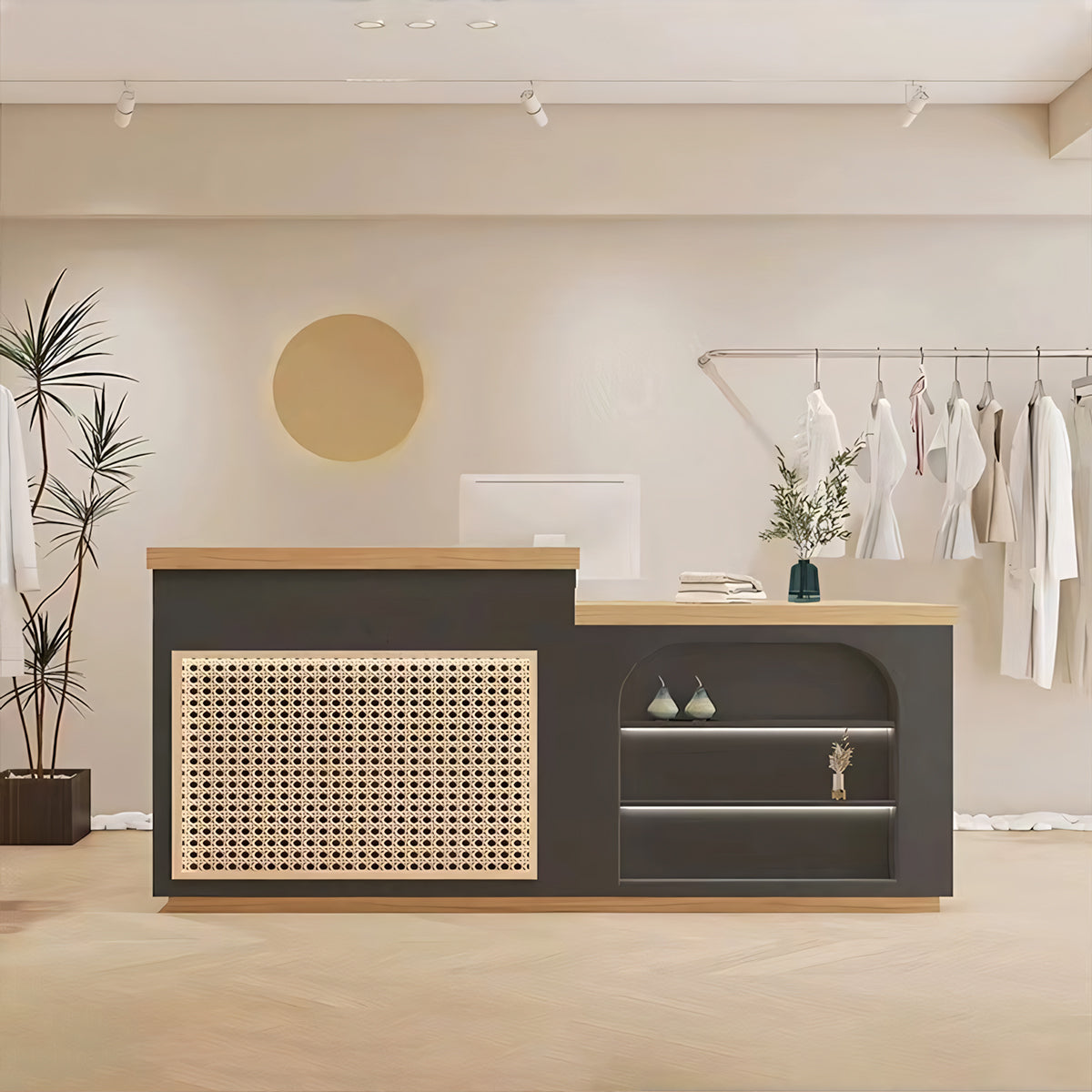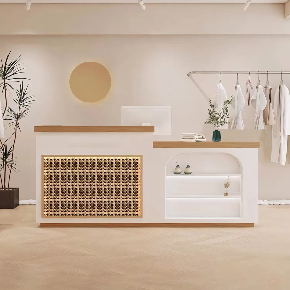 | Elevate your store's style with this Japanese wabi - sabi reception desk. Its soft, soothing hues exude a natural, rustic charm, crafting a serene and cozy ambiance that resonates with today's preference for nature and authenticity. Exquisite rattan - weaving details not only create a distinct visual allure but also infuse a dash of natural warmth. The well - designed storage below combines aesthetics and functionality, offering convenient space for various items. | |