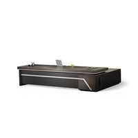 | This boss desk is made of high - end materials. The desktop has a natural texture, being wear - resistant and easy to clean. The calm color tone is paired with sharp lines, presenting a simple and grand style. There are options of single - side cabinets and double - side cabinets. The large - capacity storage keeps office items in order. The black area is both practical and aesthetically pleasing, fully demonstrating a delicate style and injecting extraordinary taste and a professional atmosphere into the office environment. | |