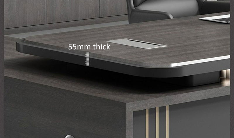 This boss desk boasts a simple and elegant design, integrating practicality and aesthetics. The spacious desktop can hold office items easily. The unique drawer design enhances storage. Stable table legs and a dignified color scheme make it an ideal choice to upgrade the office environment. | |