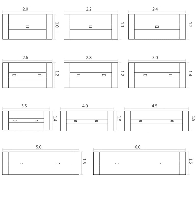 L200*W100*H75cm、L220*W110*H75cm L240*W120*H75cm、L280*W120*H75cm L300*W140*H75cm、L350*W140*H75cm L400*W150*H75cm、L450*W150*H75cm |