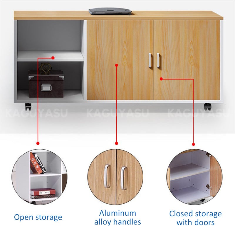 Combining open and closed storage compartments, it facilitates organized storage and classification