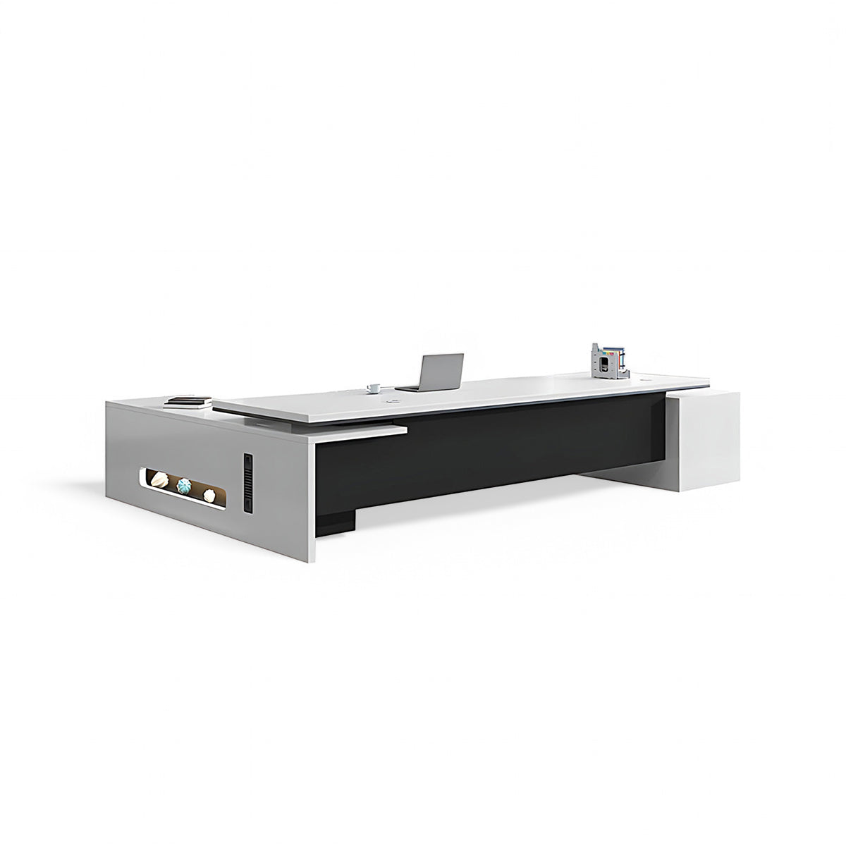 | This executive desk is designed for managers and supervisors, blending modern style with practical functionality. Its sleek and professional design fits seamlessly into any office environment, offering ample workspace and efficient storage solutions. Crafted from high-quality materials with meticulous attention to detail, it ensures durability and comfort, enhancing productivity while adding a touch of sophistication to your office. | |