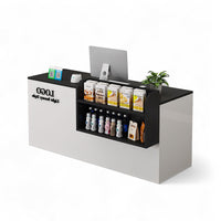 This checkout counter is available in a variety of sizes and orientations to meet your space needs. The open shelves allow you to display a variety of products.It is minimalist and practical.
