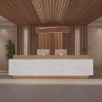 The reception desk has an imitation marble veneer design on its surface. This design can meet the decoration demands of different styles, making it both practical and aesthetically pleasing.