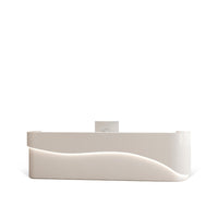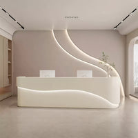 This reception desk features a minimalist and stylish appearance, with an overall white tone. Its smooth curved design is elegant and unique, while the internal layout is reasonable and offers ample storage space.
