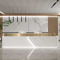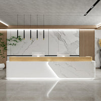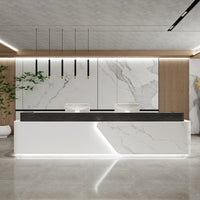 | Setting the trend with its chic lacquered design, this versatile reception desk is the ideal choice for corporate front desks, beauty salon bars, hotel reception counters, hospital information desks, and training institution cashier counters. Its unique aesthetics not only elevate the ambiance but also efficiently caters to diverse settings. Crafted with precision and using environmentally friendly E1 grade high-density fiberboard, it ensures durability and eco-conscious features. Infuse a touch of sophistication and professionalism into your space, creating a perfect reception experience for your business. | |