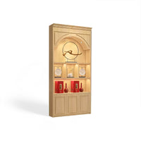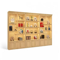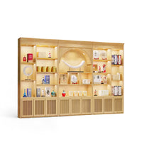 This display cabinet is mainly made of wooden materials, giving people a natural, rustic and warm feeling. Multiple display spaces are equipped with soft internal lights, which enhance the display effect.