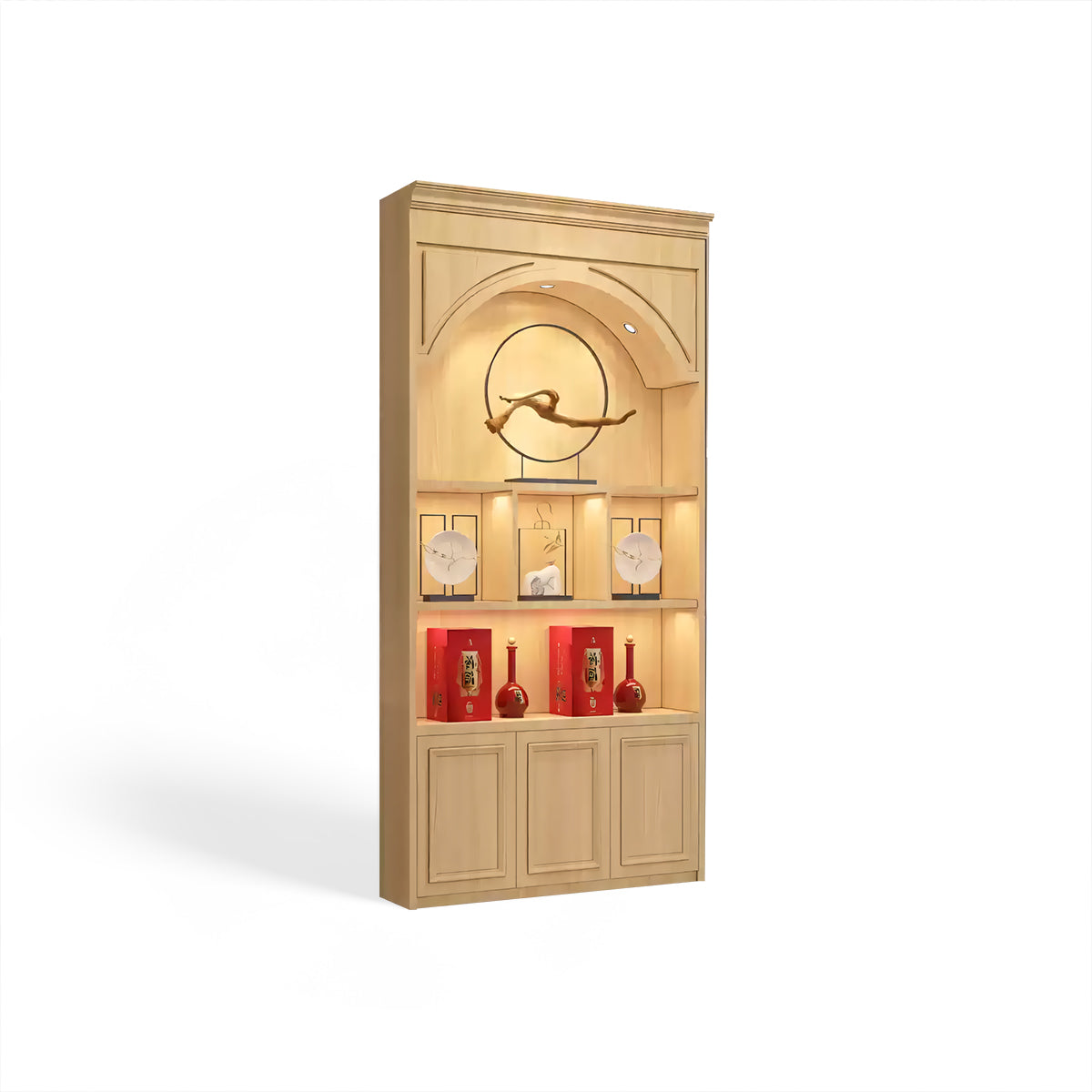 Are you still worried about not being able to find a suitable wine and antique display cabinet? Our multi-layer solid wood display cabinet is the perfect solution. Selected high-quality multi-layer solid wood panels are extremely strong and durable, which can easily enhance the overall decoration style and firmly attract customers' attention.