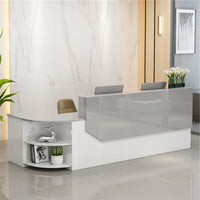| This modern minimalist reception desk features a sleek and contemporary design, enhanced by LED lighting for a touch of sophistication. Suitable for various commercial spaces and office environments, it offers efficient reception services with a stylish flair. |