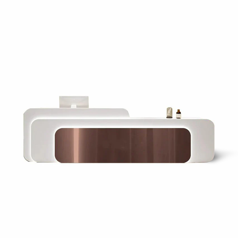 Tailored to meet your unique needs, it stands as a statement piece in any setting, be it a contemporary office or a luxury commercial environment. This stainless - steel reception desk represents the perfect blend of customization and elegance. The high - quality stainless - steel construction ensures durability, while its sleek and polished appearance exudes an air of refined sophistication. Let this reception desk be the starting point of a remarkable first impression for your business.