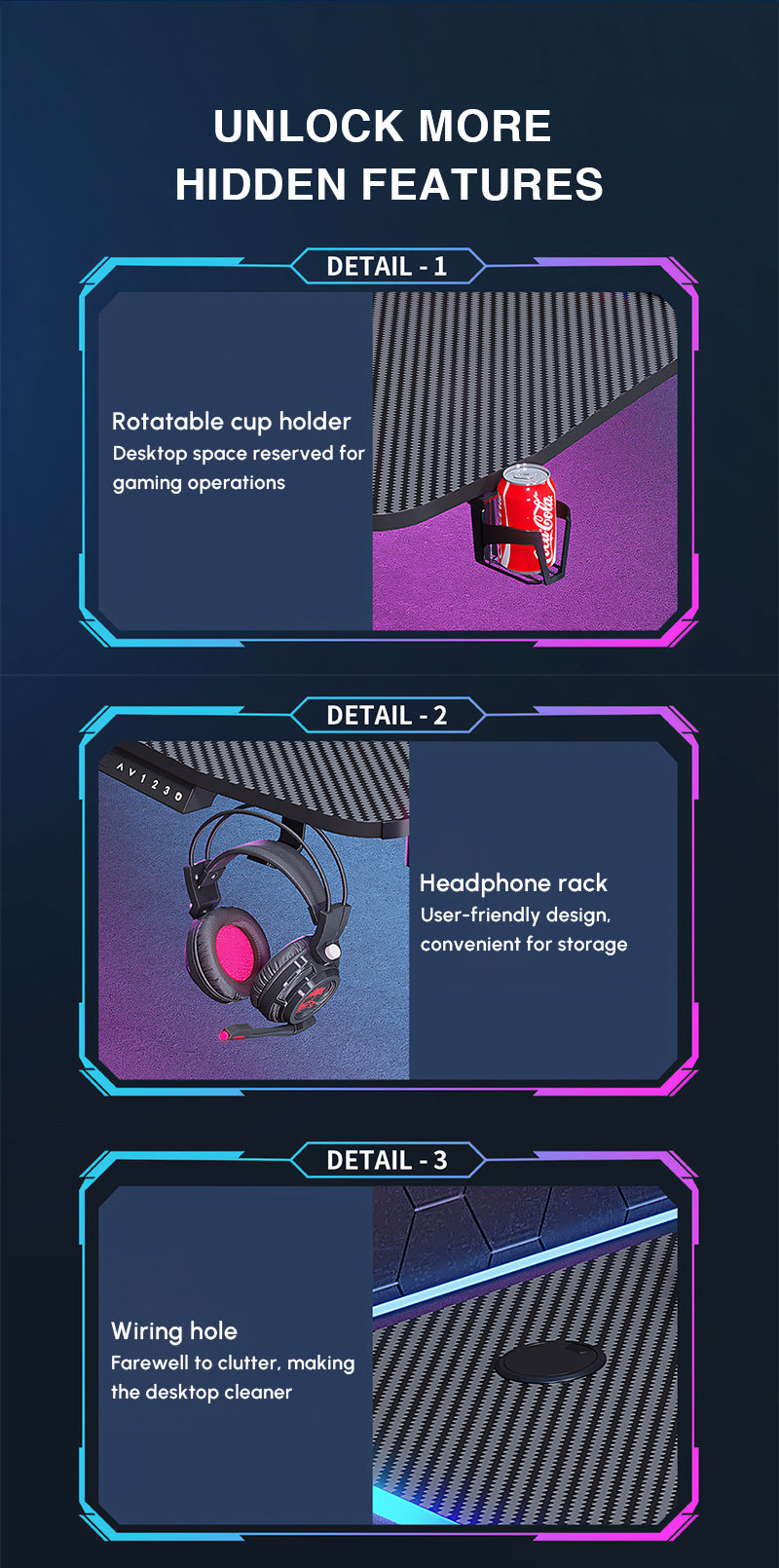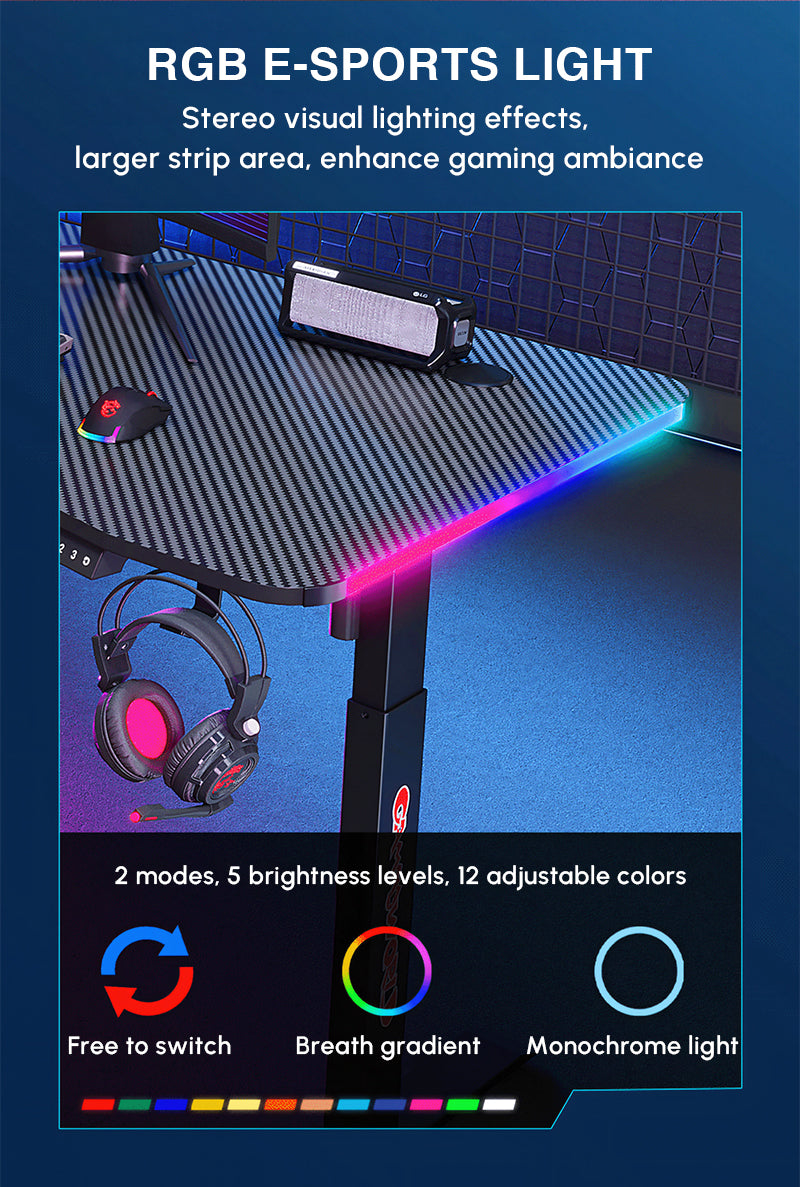 Modern Intelligent RGB Colorful Electric Height Adjustable Table For Office Or Game YGZ-2002