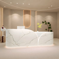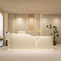 | This modern minimalist reception desk features a sleek and contemporary design, enhanced by LED lighting for a touch of sophistication. Suitable for various commercial spaces and office environments, it offers efficient reception services with a stylish flair. |