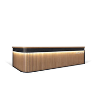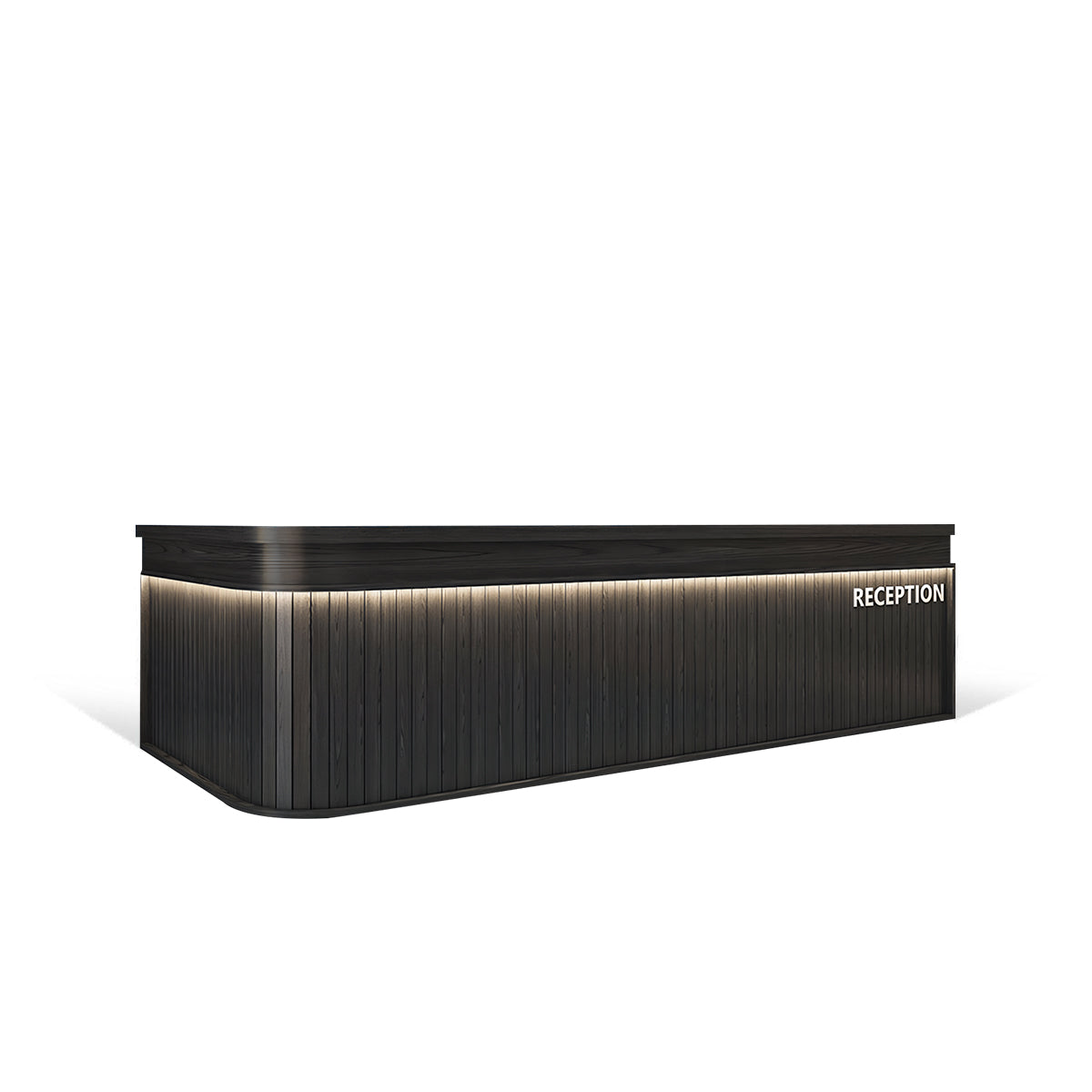 Elevate your space with our reception desk, blending sleek wood-grain and marble-esque elegance. Crafted with meticulous attention to detail, it creates an inviting, refined atmosphere that leaves a lasting impression.